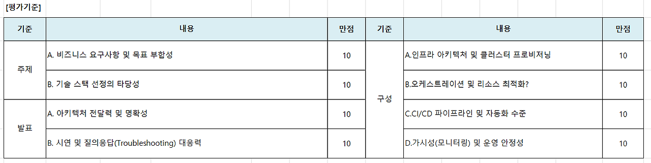 : 오케스트레이션 플랫폼(예: 관리형 Kubernetes)을 비롯해 CI/CD, 모니터링 등 컨테이너 생태계를 구성하는 다양한 도구들을 선택한 논리적 근거와 아키텍처 설계 의도가 합리적인가?