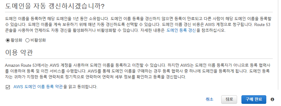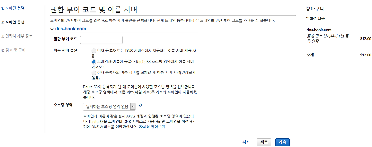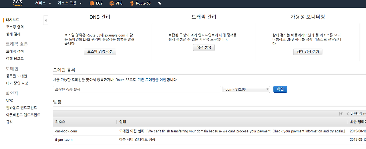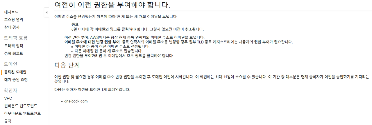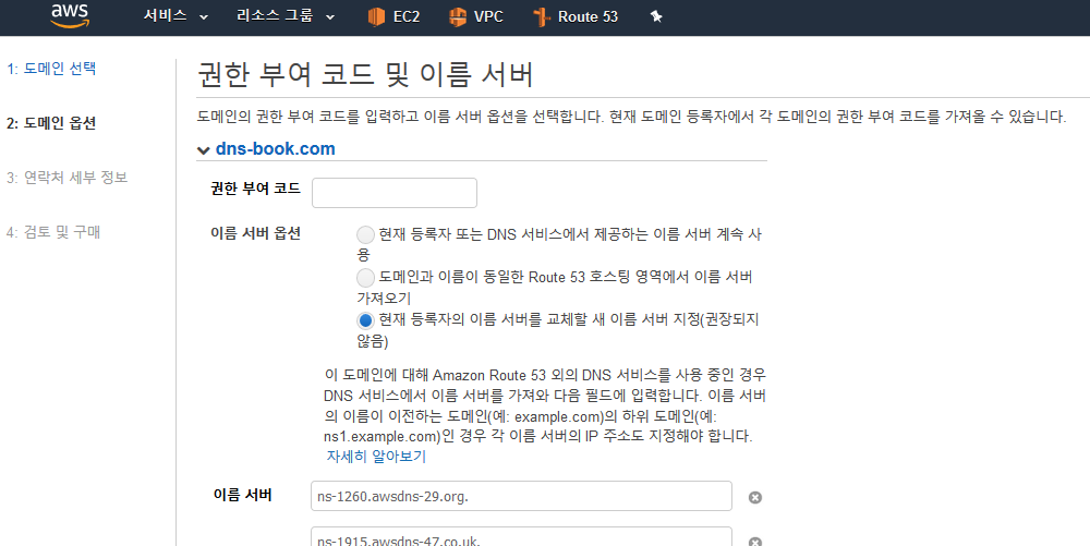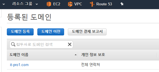 1) 도메인 결재와 네임서버 정보 등의 관리를 AWS로 이관하는 법이다.