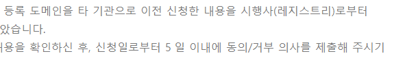 7) 도메인 등록 대행기관으로 이전 신청에 대한 메일이 온다는 내용이다.