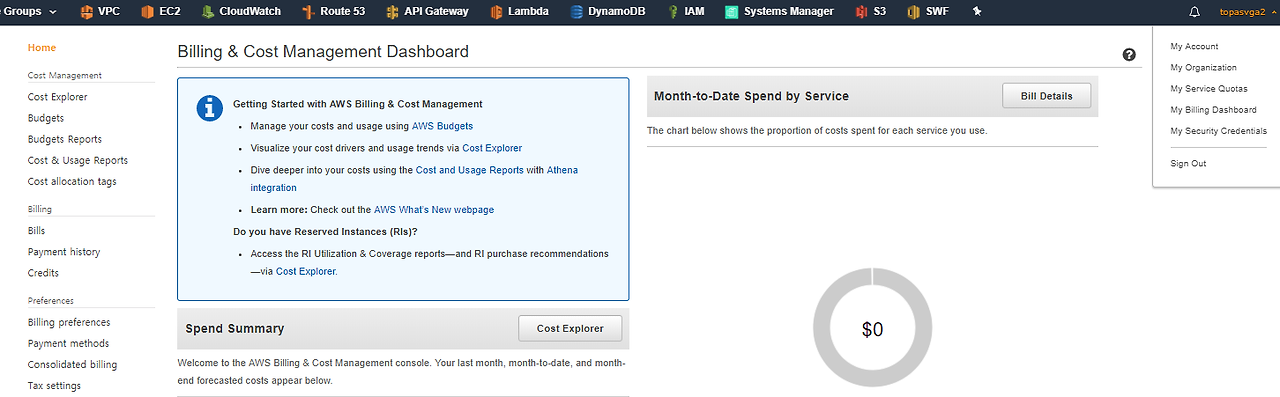 1) AWS에 로그온 해서 내 결재 계좌 정보가 이상이 없는지 확인한다.