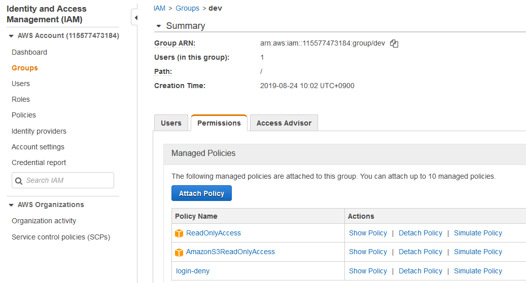 특정 IP만 AWS접속 가능하도록 Policy를 만든다.