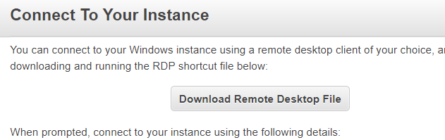 > Download Remote Desktop file> rdp 파일이 다운로드 받아진다.