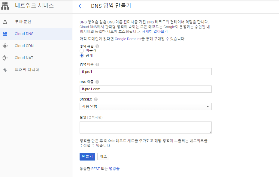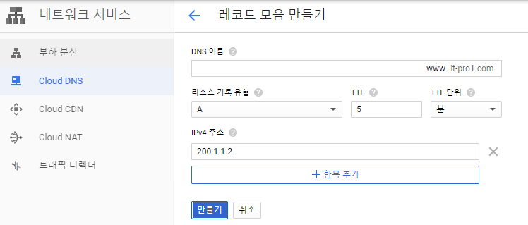 네트워크 서비스 > Cloud DNS 에서 사용할수 있다.