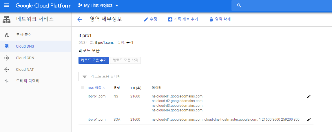 DNS를 운영하기 위한 기본 기능은 Cloud DNS 에서 지원한다.