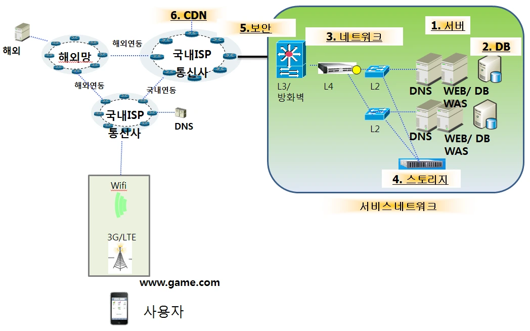 서버, DB, 네트워크, 스토리지, DNS , 계정관리,보안관리, CDN ,비용관리를 해야 한다.