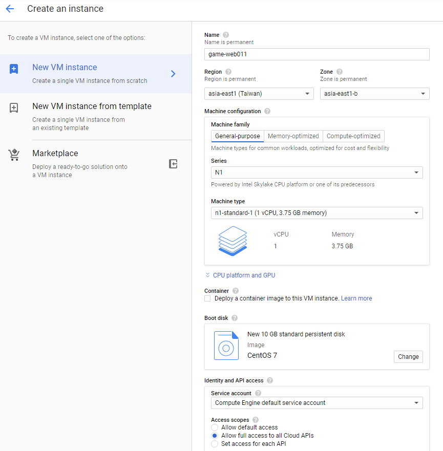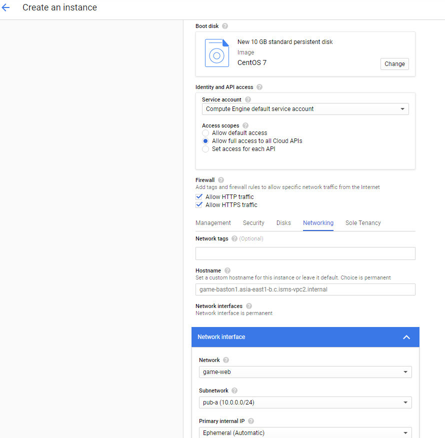 VM instances를 반드시 지정해야 나중에 오류가 나지 않는다.