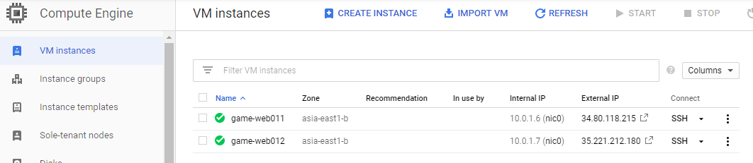 VM instaces를 만들어진 VM 2대를 지정한다.