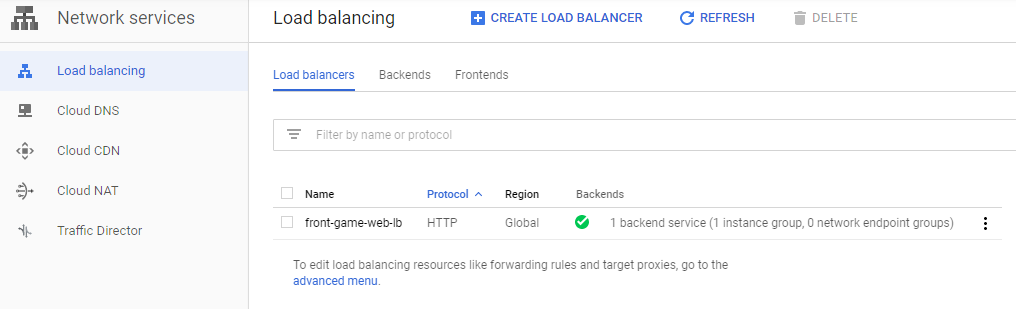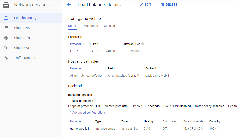 Networking > Network > 만들어진 game-web Network를 선택한다.