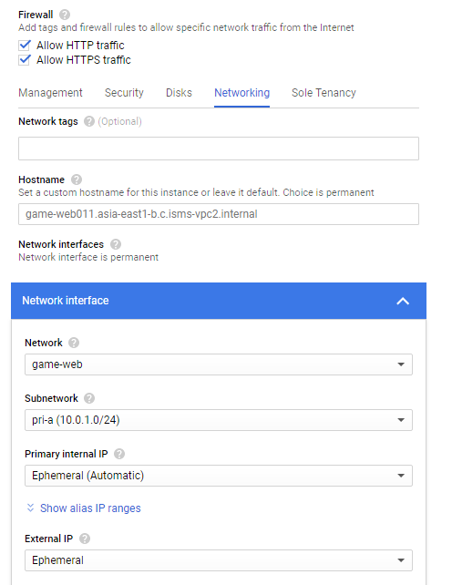 Subnetwork : pri (10.0.1.0/24) 사설 subnet으로 지정한다.