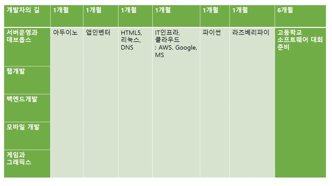 4) 고등학교 입학후, 교내 소프트웨어 대회 입상을 위해 1년 동안 준비하도록 한다.