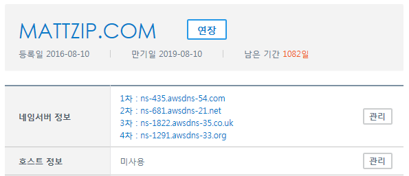 mattzip.com 네임서버를 AWS에서 알려준 네임서버로 변경한다.
