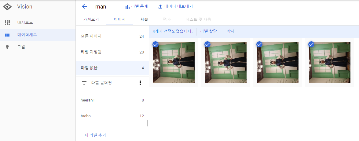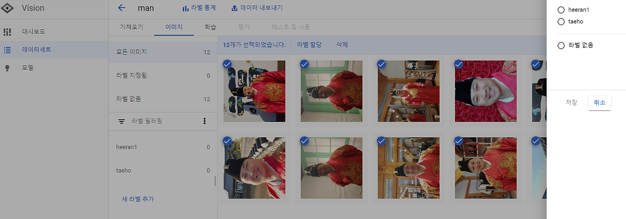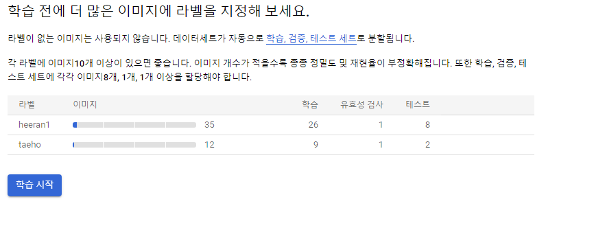 보통 라벨당 이미지를 30개 정도씩 준비하고 업로드 한다.