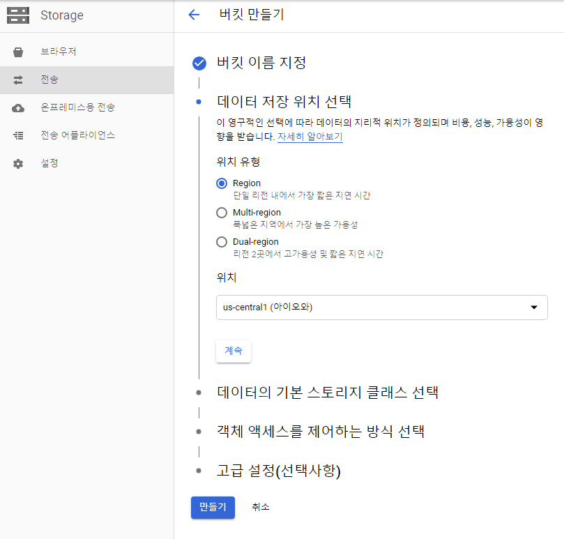 us-central1 리전에 Cloud Storage를 새로 만들어야 한다.