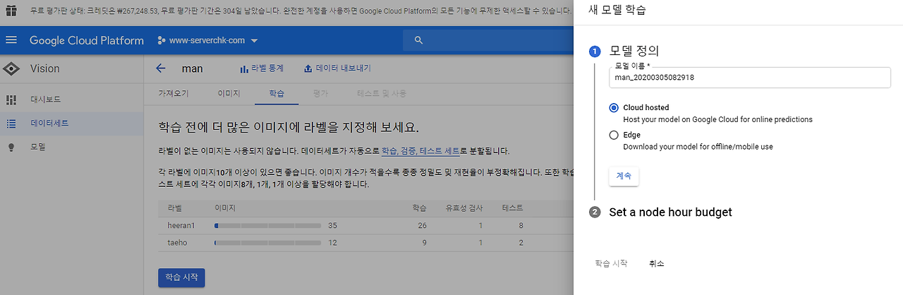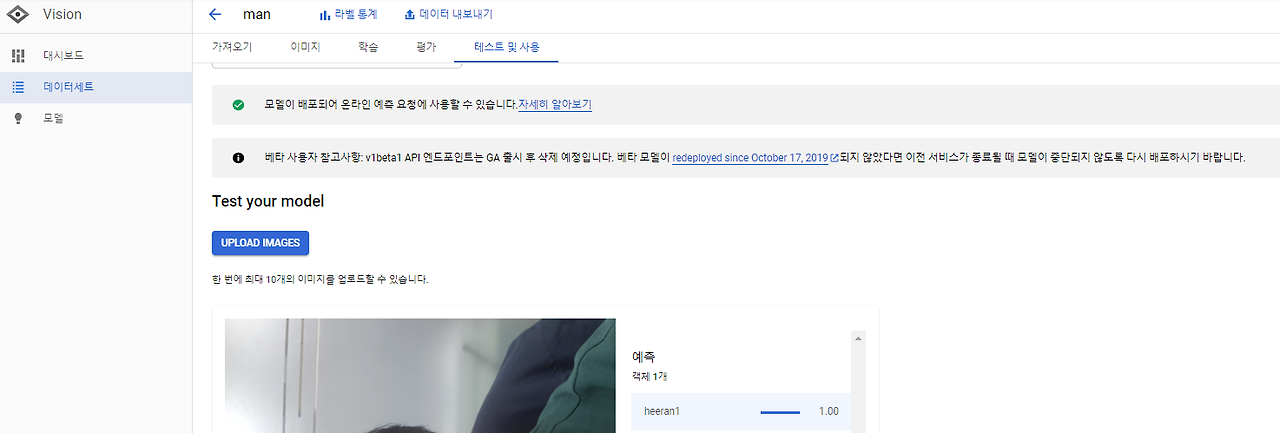 이미지 그룹 2개를 만들어 학습 시키고 , 이미지를 1개 올려 테스트 해보자.