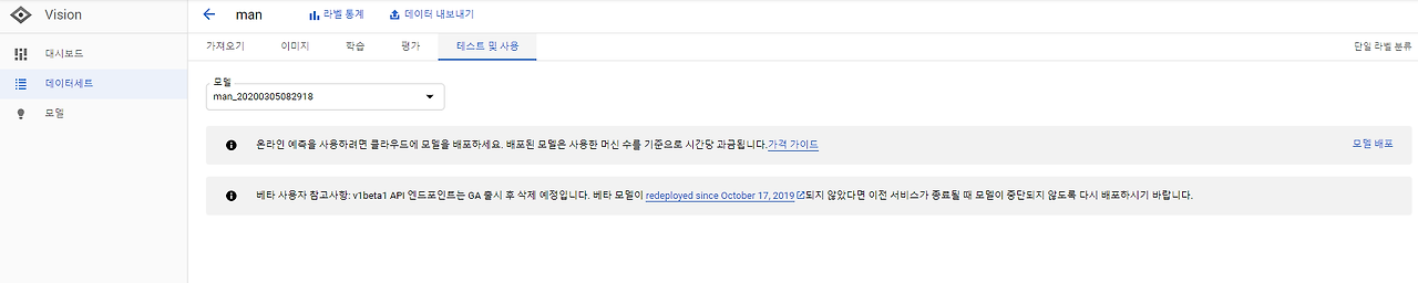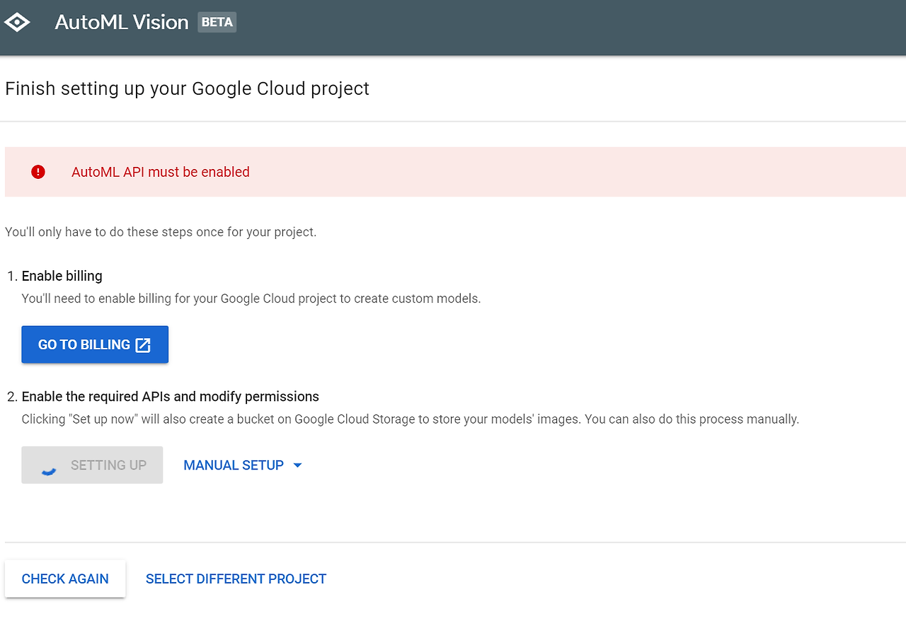 3. 사용하기 위해 AutoML API가 활성화 되어야 한다.
