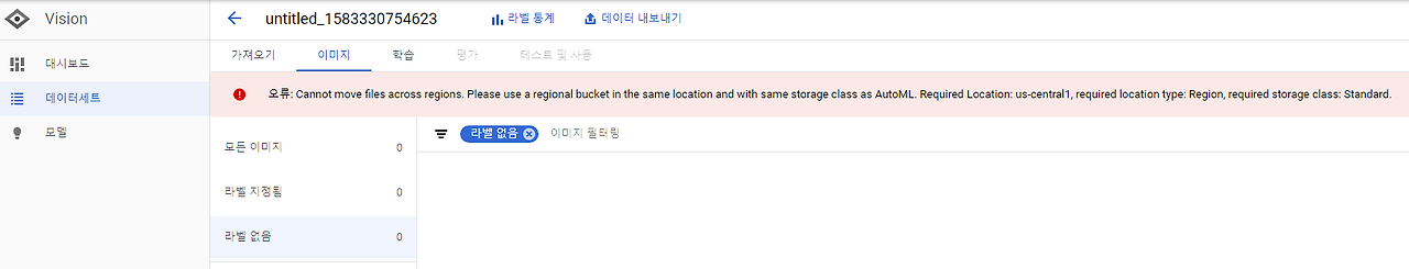 AutoML과 동일한 위치 및 스토리지 클래스와 동일한 지역 버킷을 사용하십시오.
