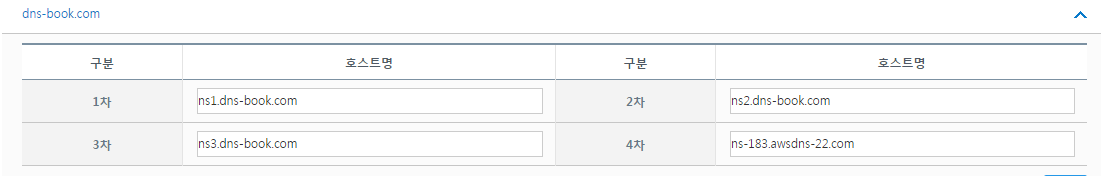 2. 도메인 등록기관에 AWS에서 알려준 네임서버(NS)를 추가한다.