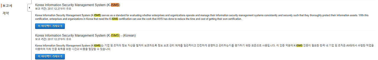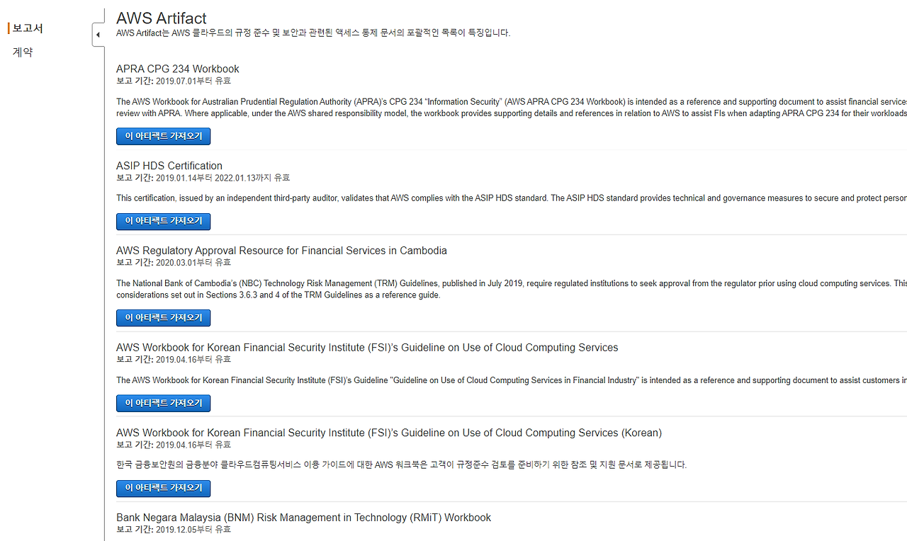 AWS Artifact는 AWS 클라우드의 규정 준수 및 보안과 관련된 액세스 통제 문서의 포괄적인 목록이 특징입니다