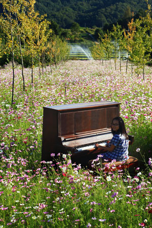 그리고 코스모스 꽃더미 한가운데 낡은 피아노를 놓아두고 사진 한 장을 찍어 블로그에 올렸습니다.