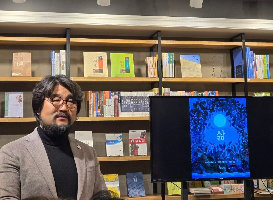 “어떻게 계속 글을 써 나갈 힘을 얻을 수 있을까요?” 그날의 마지막 질문이었습니다. 작가님이 답으로 소개한 책이 <삶>입니다. 표지의 환상적인 블루가 저를 단번에 사로잡았습니다. 화면 속의 책으로 빨려들 기세인 저를 본 친구가 <삶>을 선물하겠다고 하네요. 기꺼운 마음으로 선물을 받기로 했습니다. 이 그림책을 보면 친구가 떠오르고 또, 행복할 테니까요.