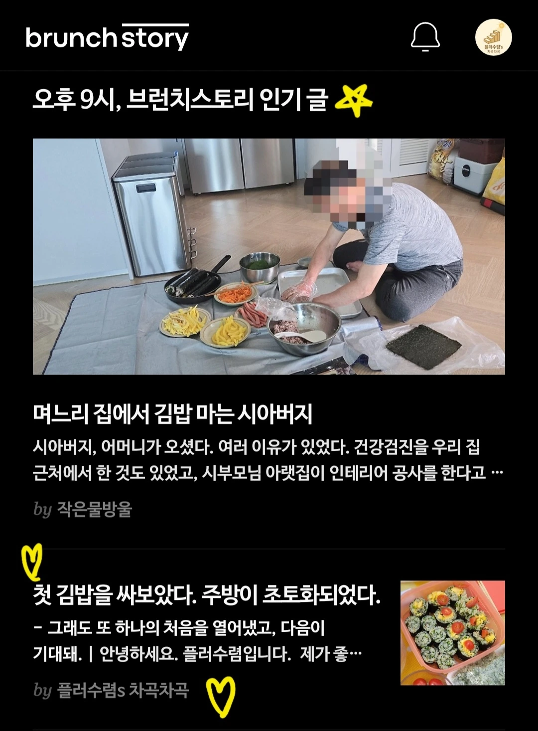 그게 작지만 확실한 성취감으로 다가왔고, 계속해서 글을 쓰게 되는 자극이 되기도 했습니다.