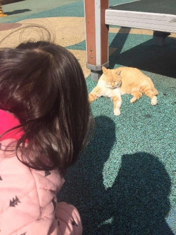 <등원길에 만난 고양이, "아 닝겐. 나의 늦잠을 방해하지마.">