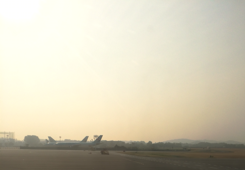 평일 오전 7시가 조금 넘었음에도 불구하고 김포공항에는 꽤나 사람들이 많았다. 항공권을 발권하고 일찌감치 탑승수속대를 통과해 8번 게이트 대기석에 앉았다. 앉아서 정면을 바라보니 육중하면서 유연한 동체를 뽐내는 비행기가 눈에 들어왔다. 그 뒤로는 겹겹이 쌓인듯한 희뿌연 한 안개가 활주로 바닥에 낮게 깔려있었다. 그 속을 굉음과 함께 하늘로 박차고 솟아오르는 비행기가 보였다. 비행기를 보니 여행이 실감이 나면서 긴장이 약간 풀렸다. 긴장이 풀리니 피곤과 설친 잠의 여파가 사정없이 몸으로 밀려들어왔다. 연신 하품을 해댔다. 잠을 쫓아낼 요량으로 화장실에서 세수를 연거 푸하고 주변을 어슬렁거렸다. 어슬렁거리는 식으로 공항 구경을 대충 마시고 비행기로 향하는 셔틀버스에 탔다. 간드러진 애교에 비음을 얹은 젊은 여자의 목소리가 셔틀버스에서 끓이지 않았고, 여자 앞에 남자는 사랑의 쟁취를 위해 놓쳐서는 안될 호응을 계속했다. 살짝 웃음이 났지만 애써 눌러 참았다. 아무리 물질적 충만이 가득한 여행이라고 해도 사랑이 없으면 반도 즐길 수 없는 것이 여행이 아닌가 싶었다.