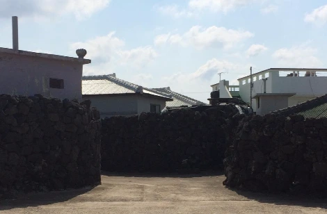 맨바닥에 묵직한 현무암을 아랫돌로 깔고 그 위로 크고 작은 현무암을 층 구분 없이 굄돌로 겹겹이 쌓아 올린 제주의 담벼락에서 나는 묘한 조화의 안정감을 느낀다. 도시의 담벼락과는 다른 감정이다. 벽돌과 시멘트로 반듯하게 층층이 쌓아 올린 도시의 담벼락에서는 규칙적인 패턴과 대칭에서 오는 질서의 안정감이 느껴진다. 도시 담벼락에 익숙한 사람들이 제주의 담벼락을 보면 허술하다 할지 모르겠다. 그러나 도시 사람은 모른다. 제주의 담벼락에는 틈새와 죔돌이 있다는 것을. 제주 담벼락에는 틈새가 있어 제주의 바닷바람을 온몸으로 막지 않고 오히려 내맡긴다. 행여나 담벼락이 무너질 걱정은 말자. 죔돌이 그 틈새의 여백을 간직한 채 쐐기돌 못지않은 역할을 한다. 이런 담벼락 사이를 꼬불꼬불하게 이어진 골목길을 걷는 것이 즐겁다. 눈이 즐겁고, 귀가 즐겁고, 코가 즐겁다. 그러나 가끔씩 그 틈새에 시멘트를 덧칠하는, 이도 저도 아닌 애매한 담장의 발견하면 나는 안타까운 마음이 인다.