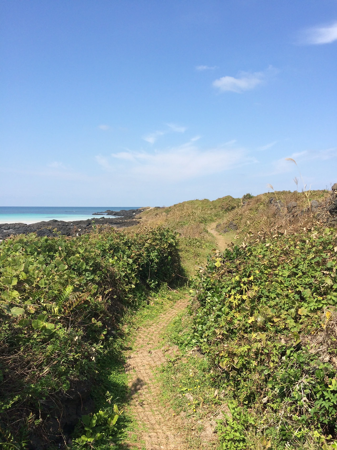 행원포구의 바다를 뒤로 하고 숲으로 들어선다. 한참 숲길을 걸으면 좌가연대를 마주한다. 좌가연대에 스스럼없이 올라 탁 트인 시야를 내려다보며 짧은 탄성을 내뱉는다. 그리고는 계속해서 걷는다. 계룡동과 평대 옛길을 지나면서 나를 반기는 백구 강아지와 잠시 놀고, 풀 뜯는 말을 신기하게 바라본다. 다시 한참을 걷는다. 드디어 낯익은 평대리에 들어서니 반가운 마음과 함께 안도감이 든다. 여기서 조금만 더 가면 해녀박물관이 나올 터이다. 이렇게 수 시간을 걷는 동안 나를 제외하고는 아무도 없었다. 나의 숨소리와 발자국 소리만 있을 뿐이었다. 온전히 나만 집중할 수 있는 연속적인 순간이 다가오면 사색이 시작된다. 길을 계속 걸으면서 ‘예전에 미쳐 생각하지 못했던’, ‘생각조차 할 수 없었던’, ‘풀고 싶었지만 풀 수 없었던 나의 문제들’을 하나하나 꺼내어 정면으로 마주한다. 그리하면 나의 불안과 공포가 제주 바람과 함께 사라지는 것은 아니지만 맞설 수 있는 힘을 얻는다.