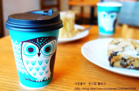 #5-2. 기왕 점심을 거르고 사무실을 나온 김에, 역삼역 왕풍뎅이 건물 근처 즈음에서 반환점을 찍기로 했다. 강남대로 양옆으로 어깨를 한껏 올린 빌딩들에 가려진 채로 따닥따닥 붙어 있는 빌라와 연립주택의 골목길을 걸었다. 그러다가 무언가에 홀린 듯이 커피전문점 “All that coffee”에 들어갔다. 아메리카노를 주문하고 테이크 아웃 컵을 받아 들었을 때, 이거였나 싶었다. HelloMay의 올빼미. 다시, 보게 될 줄이야.