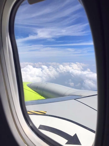 탑승게이트 뒷 켠의 벽면에 몸을 기대어 비행기 탑승을 기다릴 때도 실감 나지 않았다. 비행기가 힘차게 줄달음질을 치고 코를 하늘로 높게 치켜세우고 날아오르기 시작했을 때도 마찬가지였다. 그러나 비행기가 성층권으로 올라가 파랗디 파아란 하늘을 내 눈에 안겨주었을 때야 비로소 늦은 미소가 번졌다.
