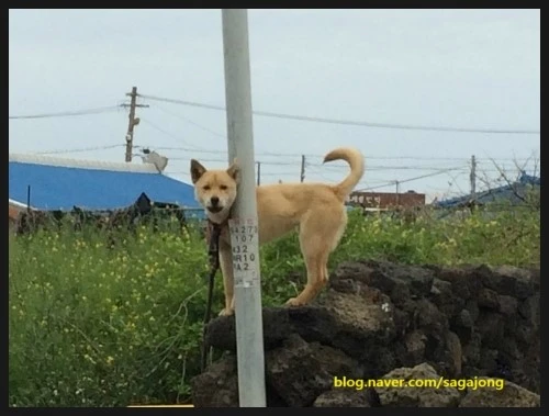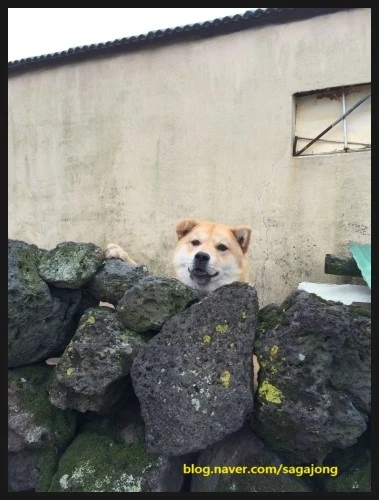 너븐숭이 기념관에서 서우봉 가기 전에 마을의 어느 집에 앉은 백구와 눈이 마주쳤다. 심심했는지 나를 보자마자 꼬리를 흔들어댔다.- fin -
