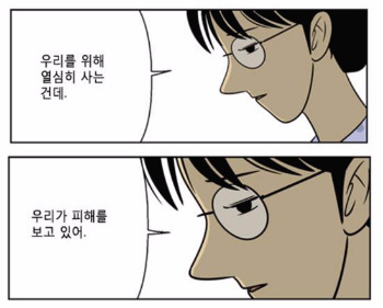 수평적인 기업문화를 지향하는 요즘은 사수와 부사수의 개념이 희박하지만 한번 직장이 평생직장으로 여겨지던 시절에는 상명하복의 군대 문화를 그대로 이어받았던 수직적인 기업문화가 태반이었다. 그 시절 사수와 부사수의 관계는 단순한 직장 선후배 사이를 뛰어넘는 관계였다. 쉽게 말해 장인과 도제 또는 스승과 제자 같은 관계였다. 스승과 제자가 오랜 기간 정진하며 같은 곳을 향했다면 둘 사이에 딱 부러지게 말할 수 없는 정 같은 것이 각자 마음속에 스며들어 있을 수밖에 없었을 것이다. 그래서 서로 다른 곳에 있었다면 서로를 응원하는 관계로 남았었을지도 모른다. 그러나 세상의 얄궂은 장난으로 과거와 뒤바뀐 위치로 다시 만난 것이었다. 그렇게 만났을 때 문 팀장의 어떤 심정이었을까? 나는 그가 아니기에 어떠한 심정을 느꼈는지 절대 알 수 없지만 적어도 그간의 행동을 보고 미루어 짐작해보면 수치심과 겁이 나지 않았을까? 시간이 흘러 사수는 만년 팀장이 되었고, 부사수는 사수를 뛰어넘고 임원이 되었다. 문 팀장은 그 상황을 있는 그대로 받아들이기 힘들었을 것이다. 자신은 열심히 살아서 이만큼 왔는데 돌연 잘못 산 것 같은 수치심과 앞으로 이 상황을 어떻게 극복해야 할지 겁이 났었을 것이다. 그리고 나를 포함한 누구라도 문 팀장보다 더 마음을 추스릴 수 있는 사람은 없었을 것이다. 나는 모든 것을 단박에 긍정적으로 생각하고 좋은 것으로 수용하는 것이 인간적이라 생각하지 않는다. 과연 뼛속까지 아무렇지도 않을 사람이 어디 있을까? 오히려 화를 내고 슬퍼하고 짜증을 내고 탄식을 하는 것이 인간답지 않은가? 그리고 인간은 그런 고통의 시간을 묵묵히 견뎌내기에 더욱 성숙한 인간으로 발돋음 할 수 있다. 그렇기에 나는 문 팀장이 너무나 인간적이지 않았나 싶다. 우리는 인간이기에 자신이 잘못되지 않았다는 것을 주변과 우리 자신에게 증명하고 싶은 욕구가 있다. 주변으로부터 인정받지 못했다는 고통만큼이나 우리 스스로 의심이 들 때 불안을 느낀다. 문 팀장도 아마 그랬지 않았을까? 그는 신이 아니었다. 그는 평범한 사람이었다. 그것도 인간적인, 말할 수 없이 인간적인 사람이었다.