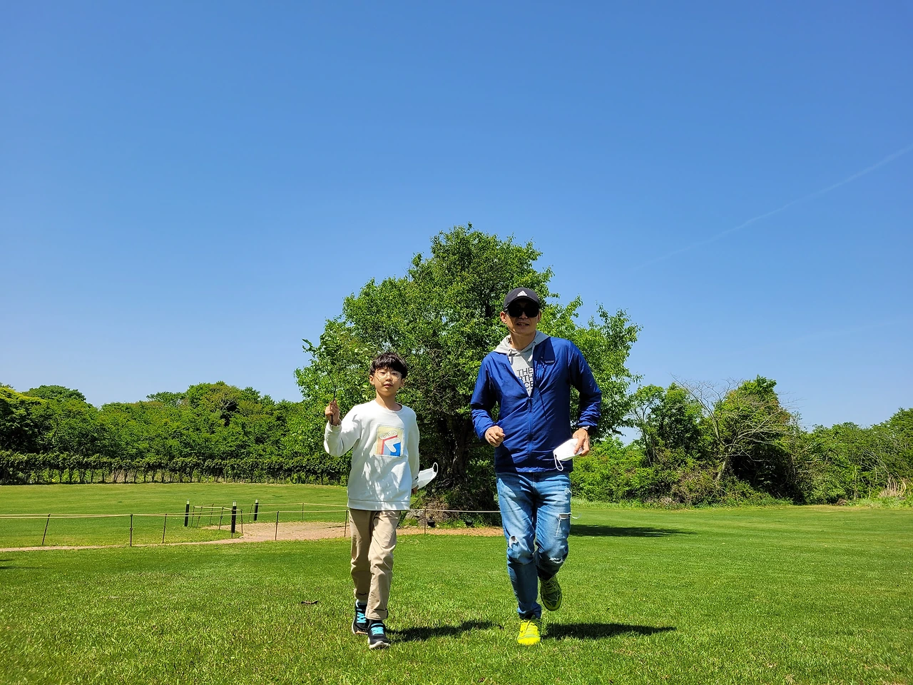 아들과 함께 푸른 들판 위에서 달렸다. 아이들이 달리는 모습은 어린이날 영상의 단골손님이다. 아이들이 좋아하기 때문인지 어른들의 바람인지 알 수는 없으나 뛰어다니는 건 아이들의 특징이다. 파아란 하늘, 초록 나무, 연두 잔디는 마음에 쏙 드는 사진을 선사했다. 비록 그대가 달리기를 좋아하지 않더라도 푸르고 푸른 하늘 아래서 초록 숲이나 잔디를 걷고 있다면 아이와 함께 달려보는 건 어떨까요? 아빠와 아이는 달리고 엄마는 사진을 찍는 거지요. 길게 달릴 필요는 없습니다. 10미터, 50미터, 100미터, 그 정도면 충분합니다. 두고두고 생각날 추억이 되지 않을까요?