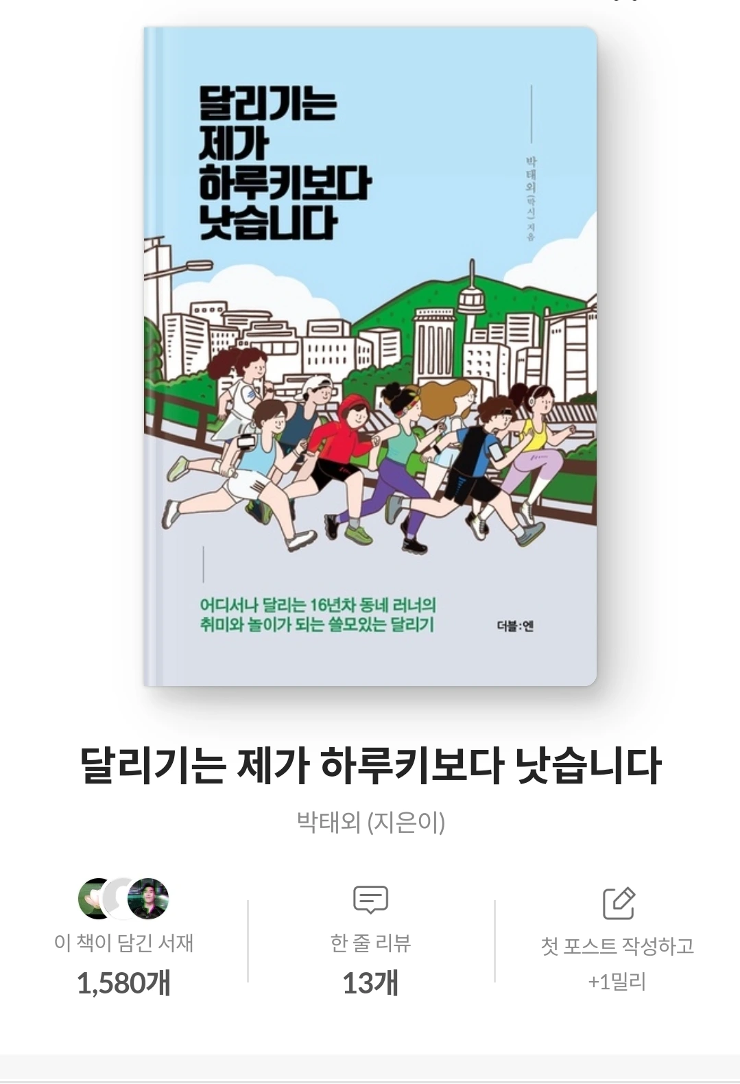 독자들이 <달리기는 제가 하루키보다 낫습니다>를 읽고 인스타나 블로그 등 어딘가에 흔적을 남겨주면 감동이 찾아온다. 책 제목을 해시태그 하면 감동에 파묻힌다. 행복에 겨워 호흡이 가팔라진다? 그건 아니지만요...
