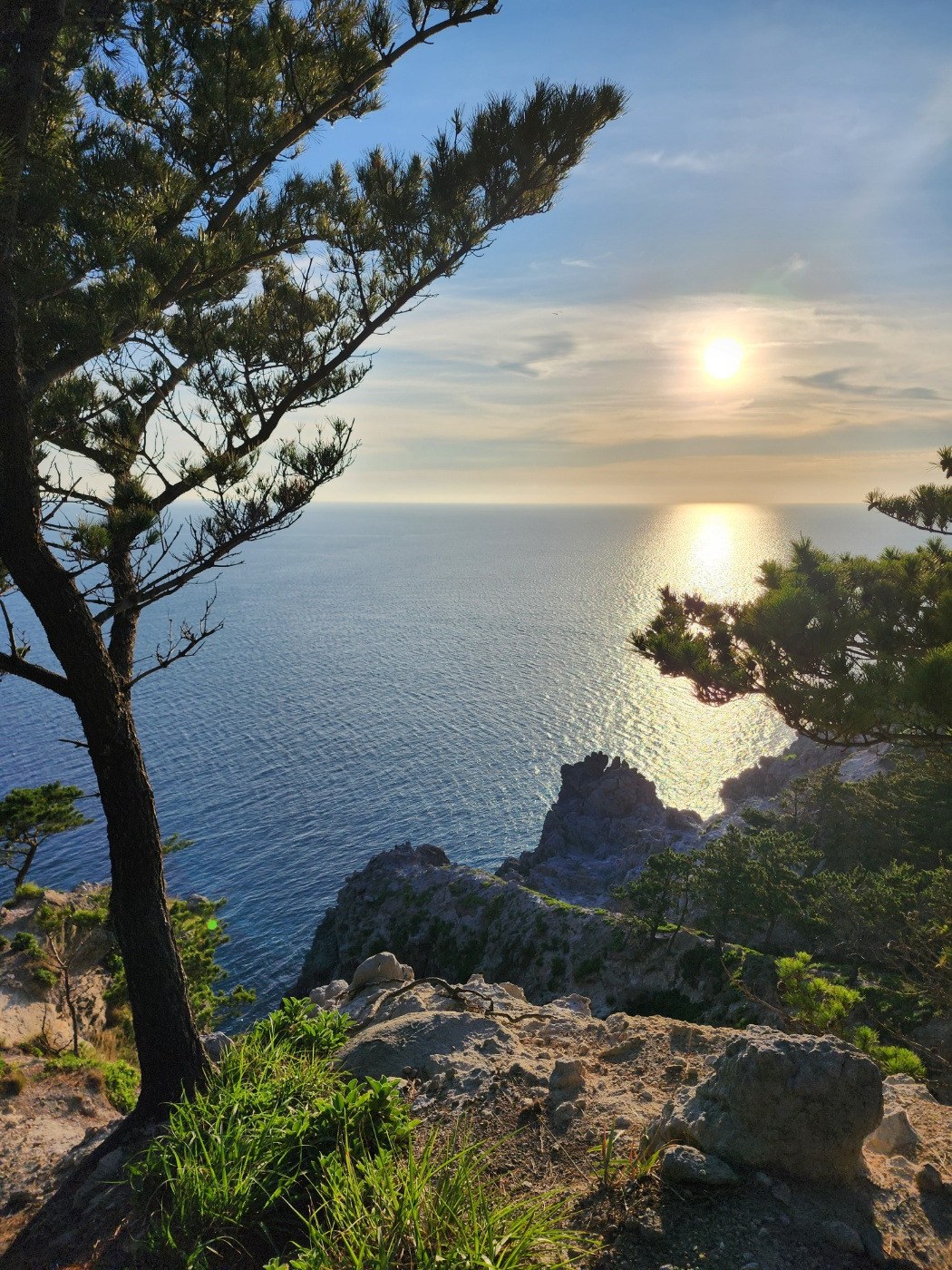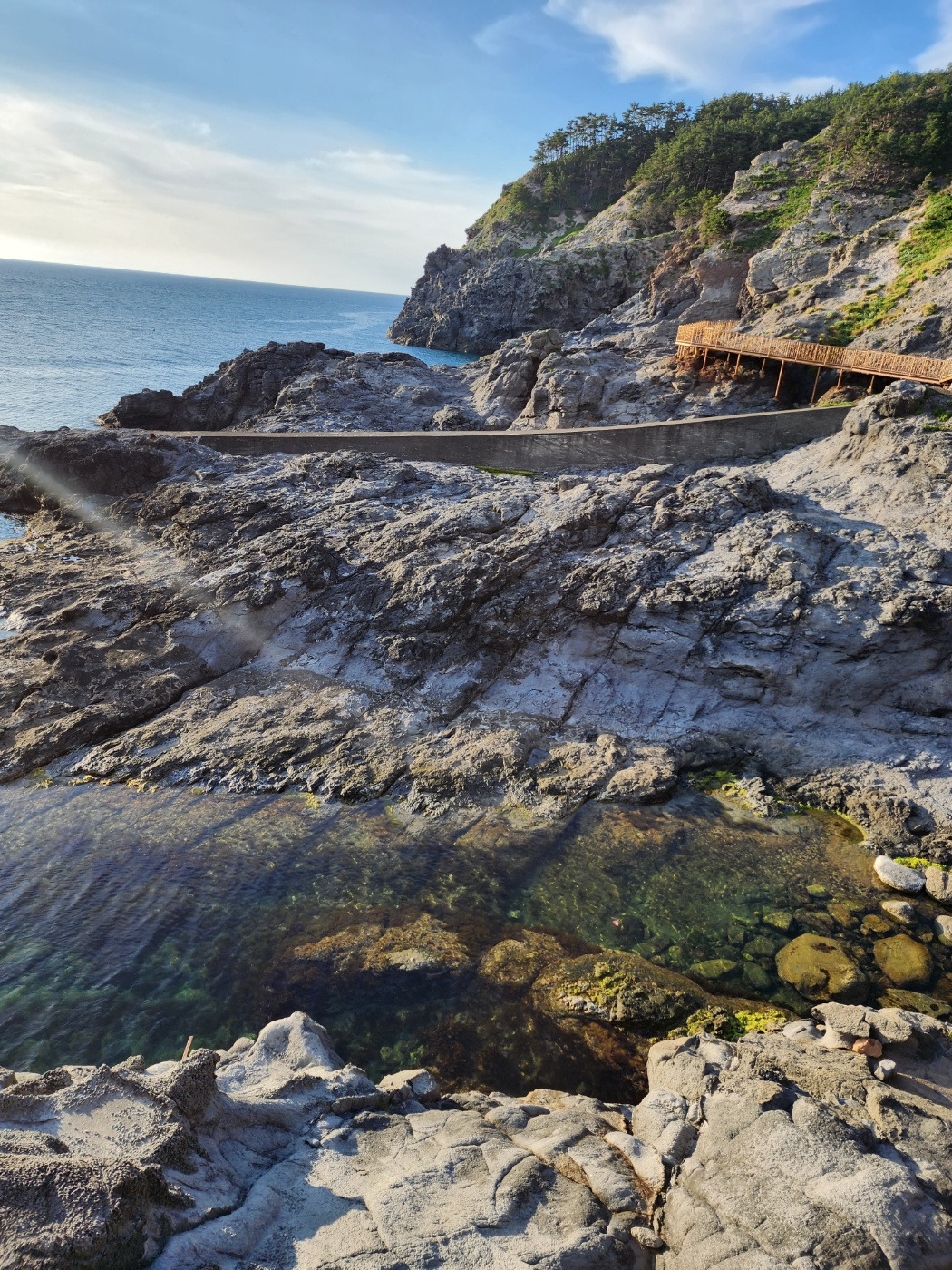 태양 빛과 구름 날씨에 따라서 바다색이 달리 보이기도 하고, 태양의 위치에 따라서도 다르게 보이는 것이 울릉도의 경치인 것 같다.