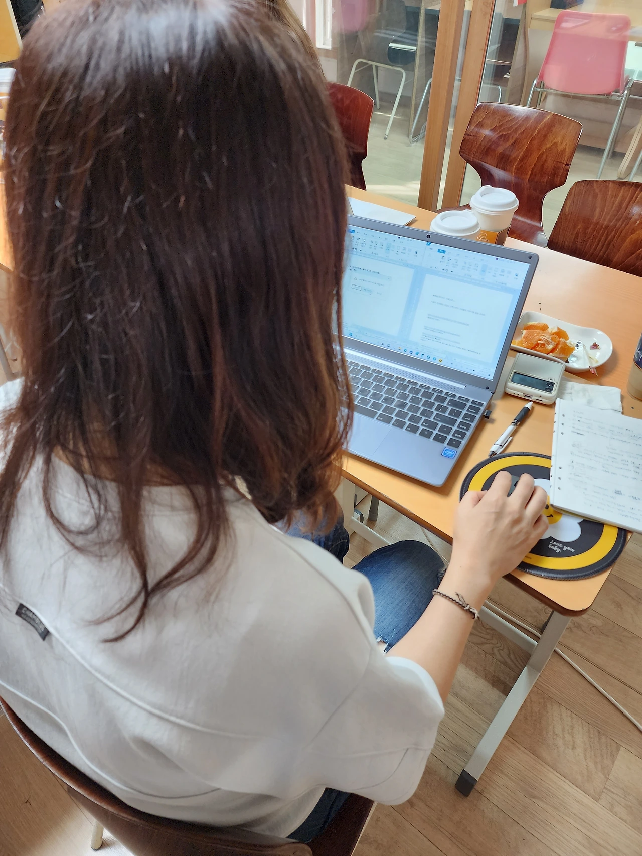1 대 1 코칭을 받고 계시는 작가님~~ 무더운 여름부터 함께 글쓰기를 해와서인지 서로에 대해서 더 많이 알게 된 것 같습니다.