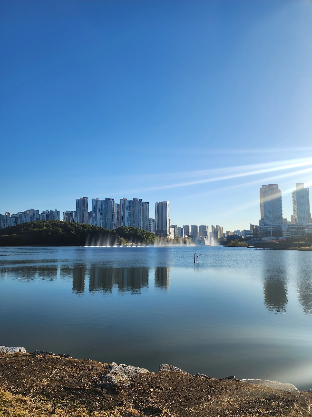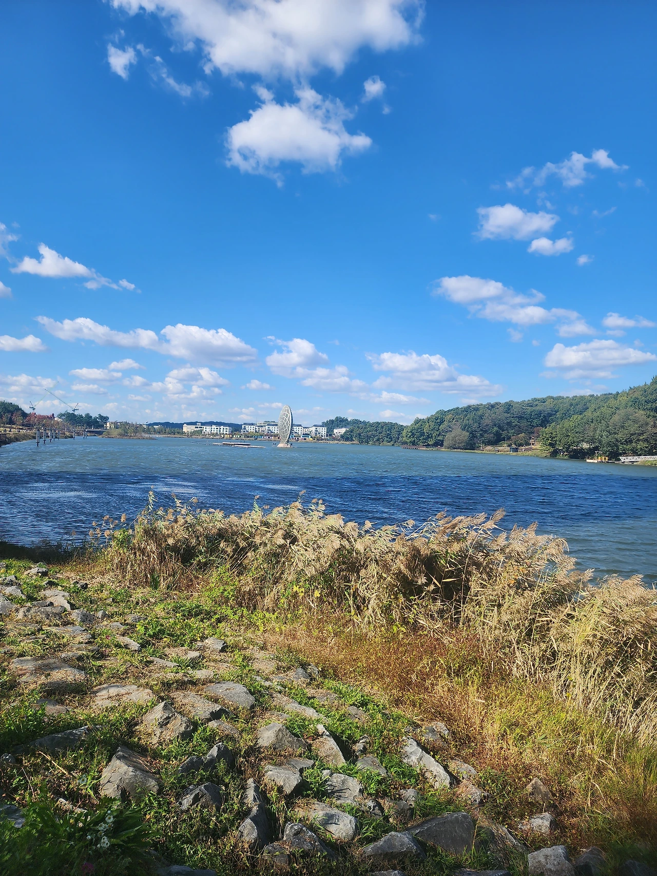 그래도 나의 마음과는 다르게 동탄 호수는 오늘도 예쁜 걸로 열일하고 있다. 바람이 무섭게 불어서 추운 날이었음에도 불구하고 호수와 하늘, 그리고 억새풀과 구름등이 모두 조화를 이루어서 최고의 풍경을 자랑한다.
