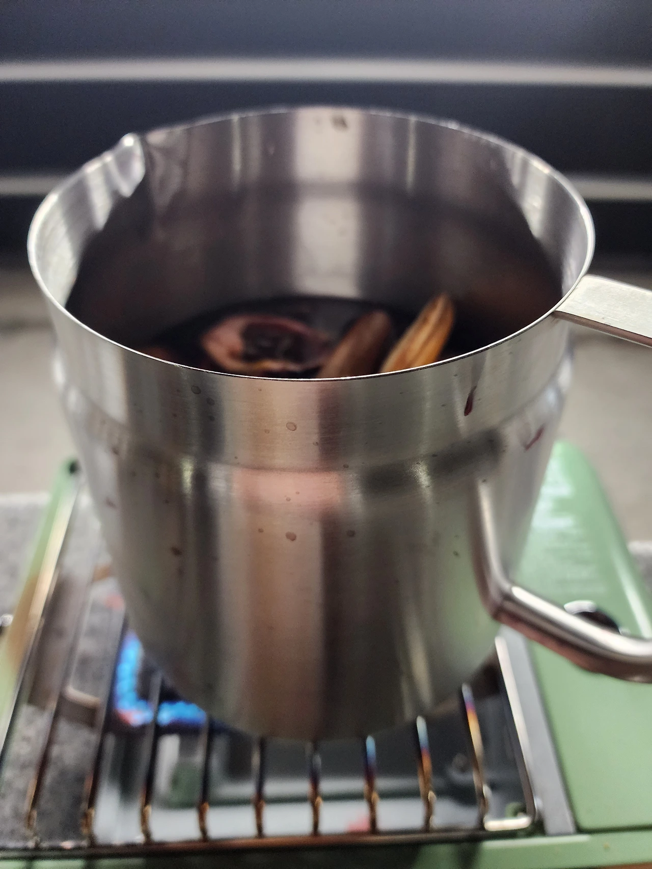 오늘 모든 일정을 끝내고 차박지로 돌아와서 열악한 환경 속에서도 기어코 뱅쇼를 만들기 시작한다.
