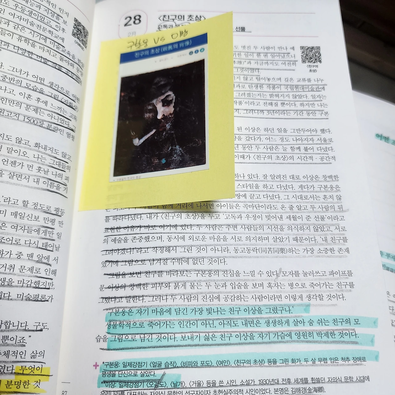 1월은 문학 편 2월은 미숙 3월은 건축 이렇게 진행했고 진행 중이다. 큐알코드까지 탑재해 주셔서 일일이 찾아가는 재미가 있었다. 그림과 작품을 찾아보고 정리해 보는 맛이 있었다. 우리의 미술에 얼마나 문외한이었는지 이번 기회에 알 수 있었다.