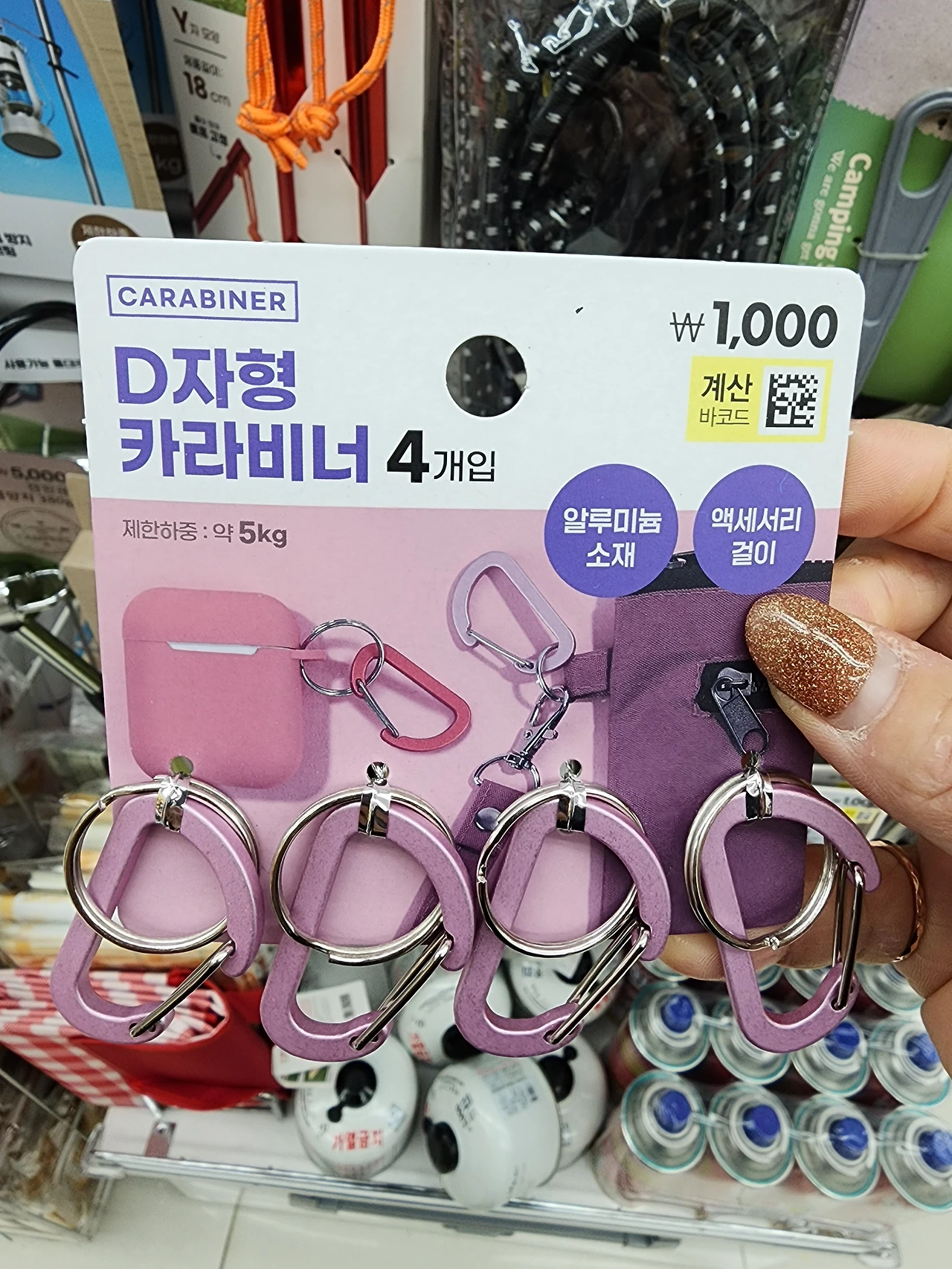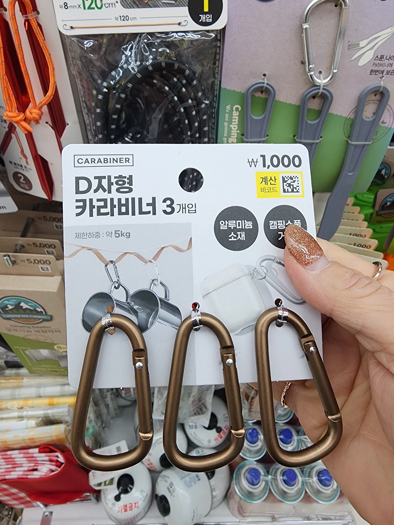 언제부터인가 다이소에도 캠핑용품들이 들어오기 시작했다. 캠핑을 하러 다닐 때는 아무래도 오래 쓰고 수납도 잘되어야 하고 거기에다 예쁘기까지 해야 해서 보통은 이름 있는 브랜드 스노우**/ 콜* /코베* 등을 구입해서 사용하곤 했다. 하지만 차박으로 옮겨가면서부터는 그런 것 보다도 작지만 소소한 것들 없으면 아쉽고 있으면 좋은 그런 것들을 구비해 놓기 시작했다. 특히나 자리를 많이 차지 않는 작은 것들을 사기에는 다이소의 캠핑용품이 딱이다.