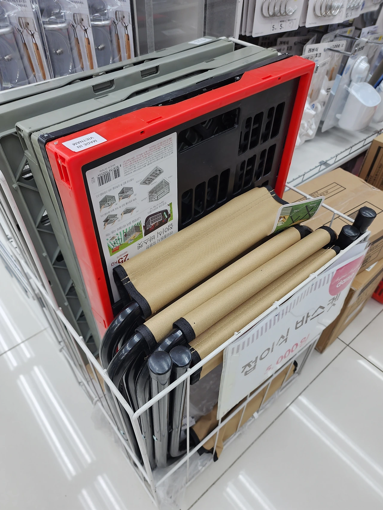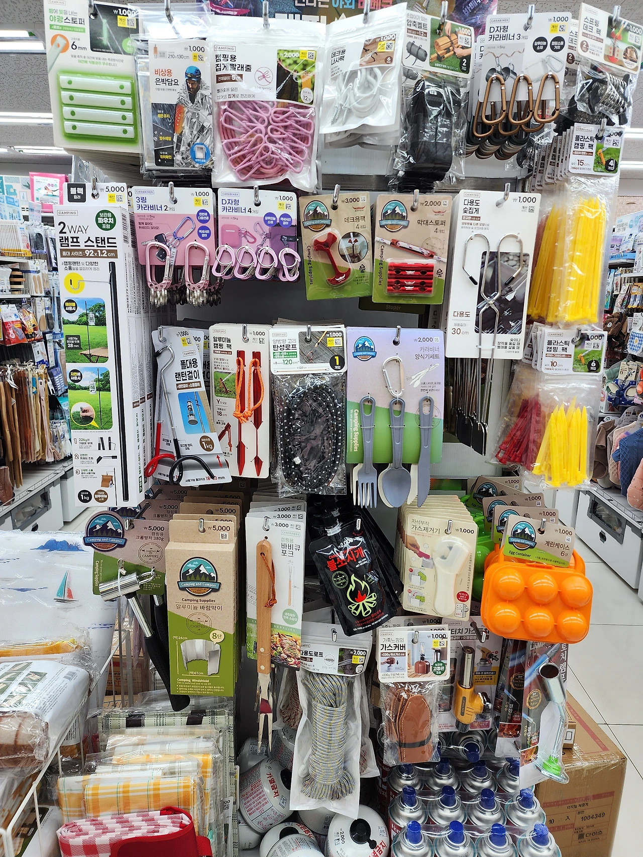 다이소 매장에 따라서 캠핑용품 코너가 넓고 물건이 많은 곳도 있고 작게 한 코너만 비치되어 있는 경우도 있다. 내가 들른 곳은 병원에 갔다가 겸사겸사 들른 오산역 부근의 매장. 아쉽게도 여기는 캠핑용품이 정말 한편에 조그맣게 자리 잡고 있는 곳이었다.