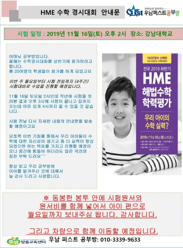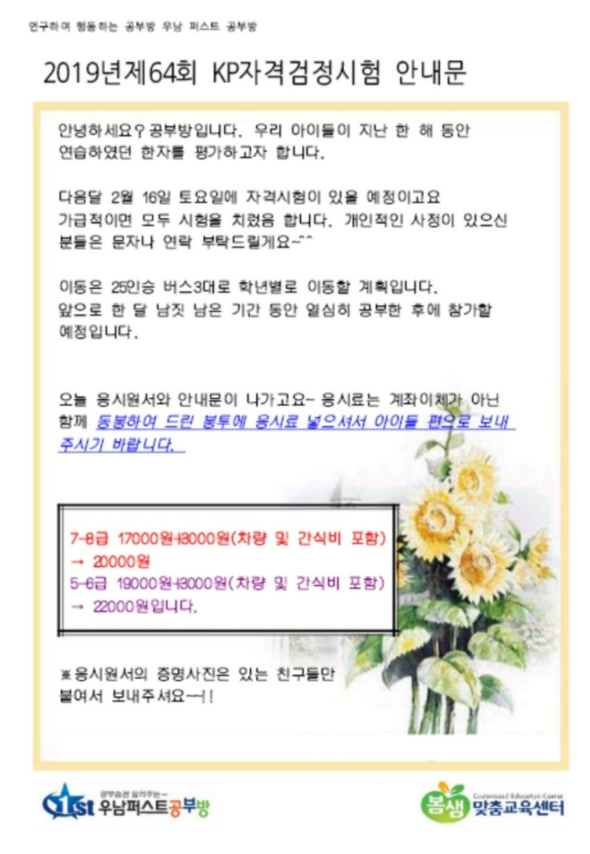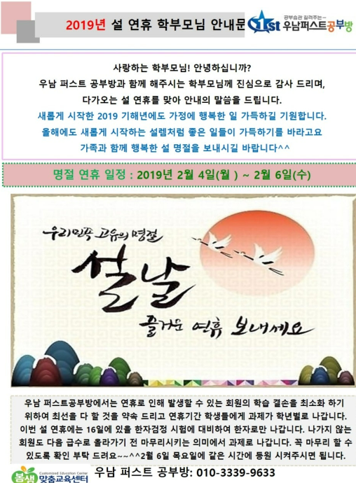 설날과 추석등과 같은 명절 안내문 / 수학경시대회와 / 한자자격검정시험 안내문에도 로고를 반드시 만들어서 나간다.