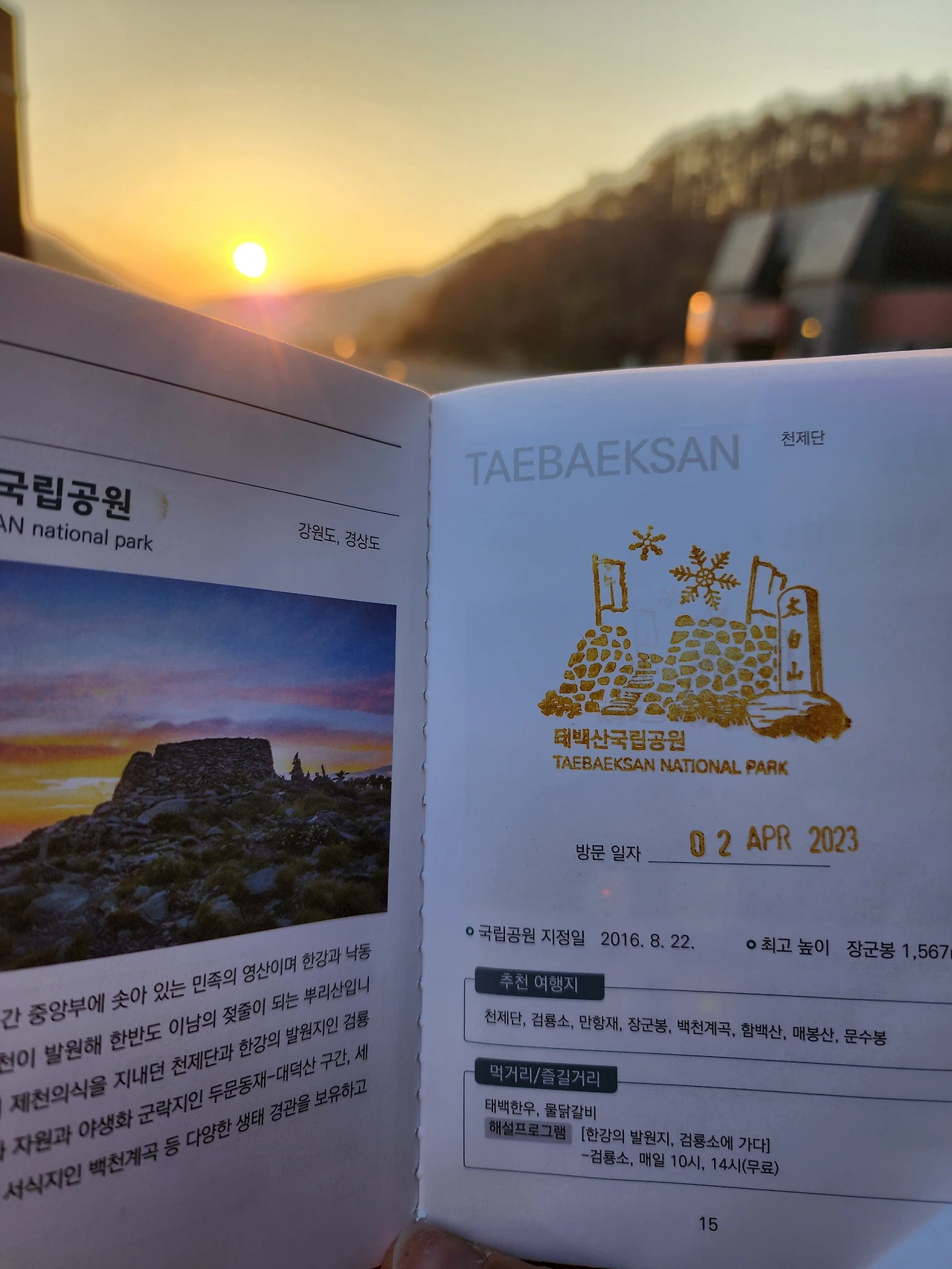 일출도 원 없이 보았는데 일부 몇 분 들은 새벽 3-4시쯤 올라서 정상에서 일출을 보는 코스를 보고 내려오시더라고요. 저도 다음번에는 새벽산행 후에 정상에서 일출을 맞이해야겠습니다.
