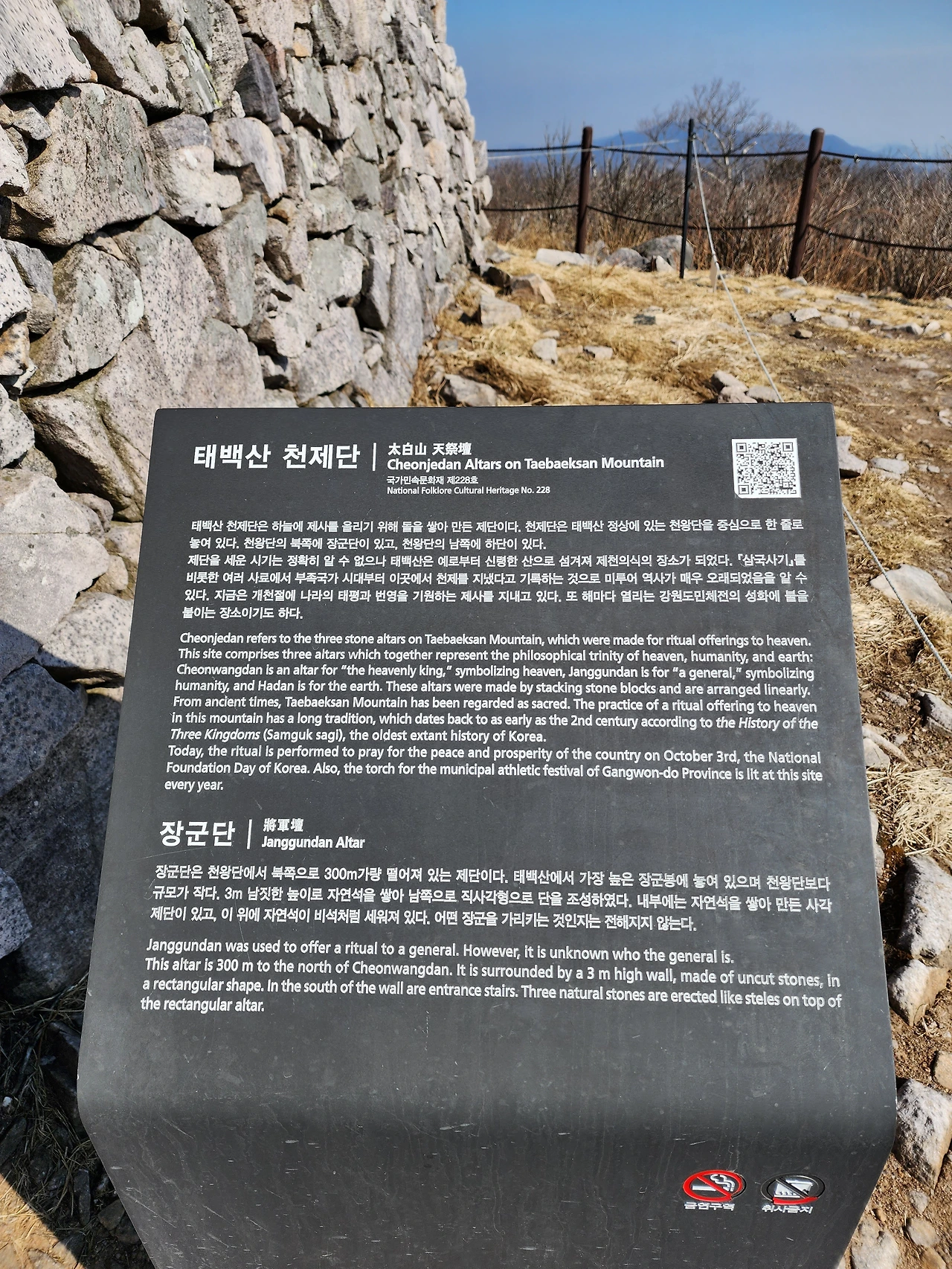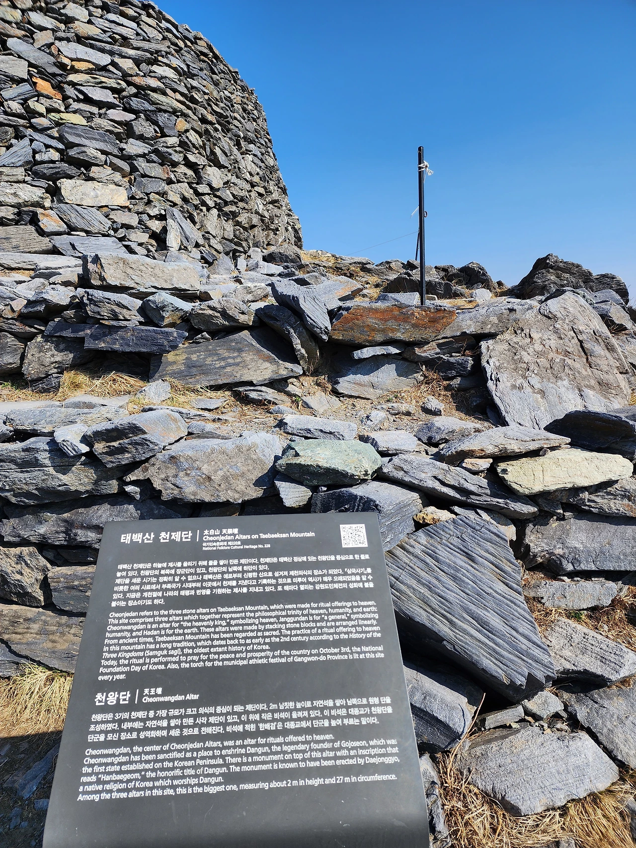 드디어 천제단에 도착하여 그 안으로도 들어가 보니 백두대간이 눈에 들어옵니다. 웅장하게 펼쳐지는 산세를 보면서 마음이 저절로 겸손해지네요