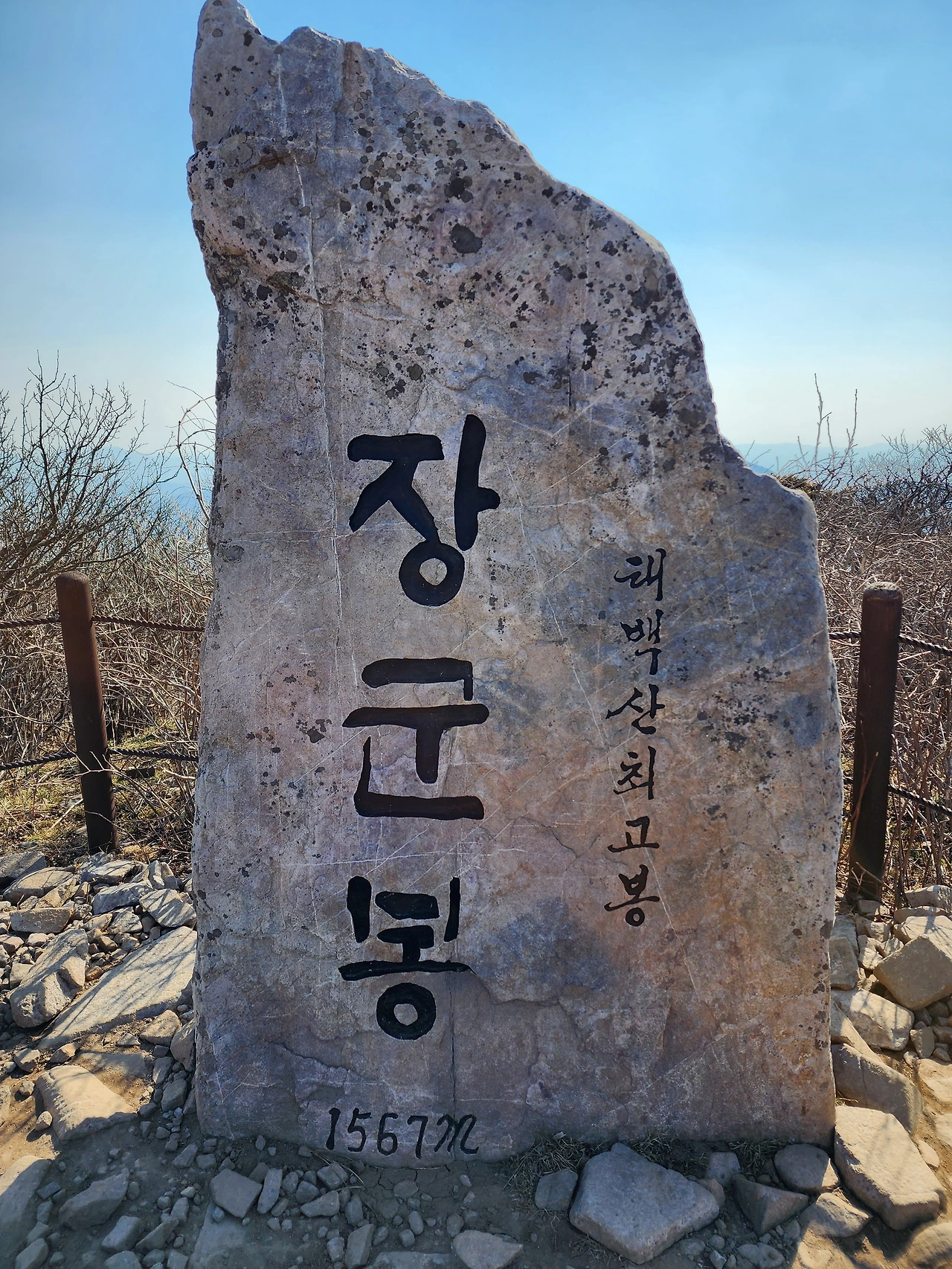 보통은 정상석이 한 개인데 이곳 태백산은 장군봉과 태백산의 두 정상석이 따로 놓여 있습니다. 조금은 인위적인 듯한 태백산 정상석입니다.