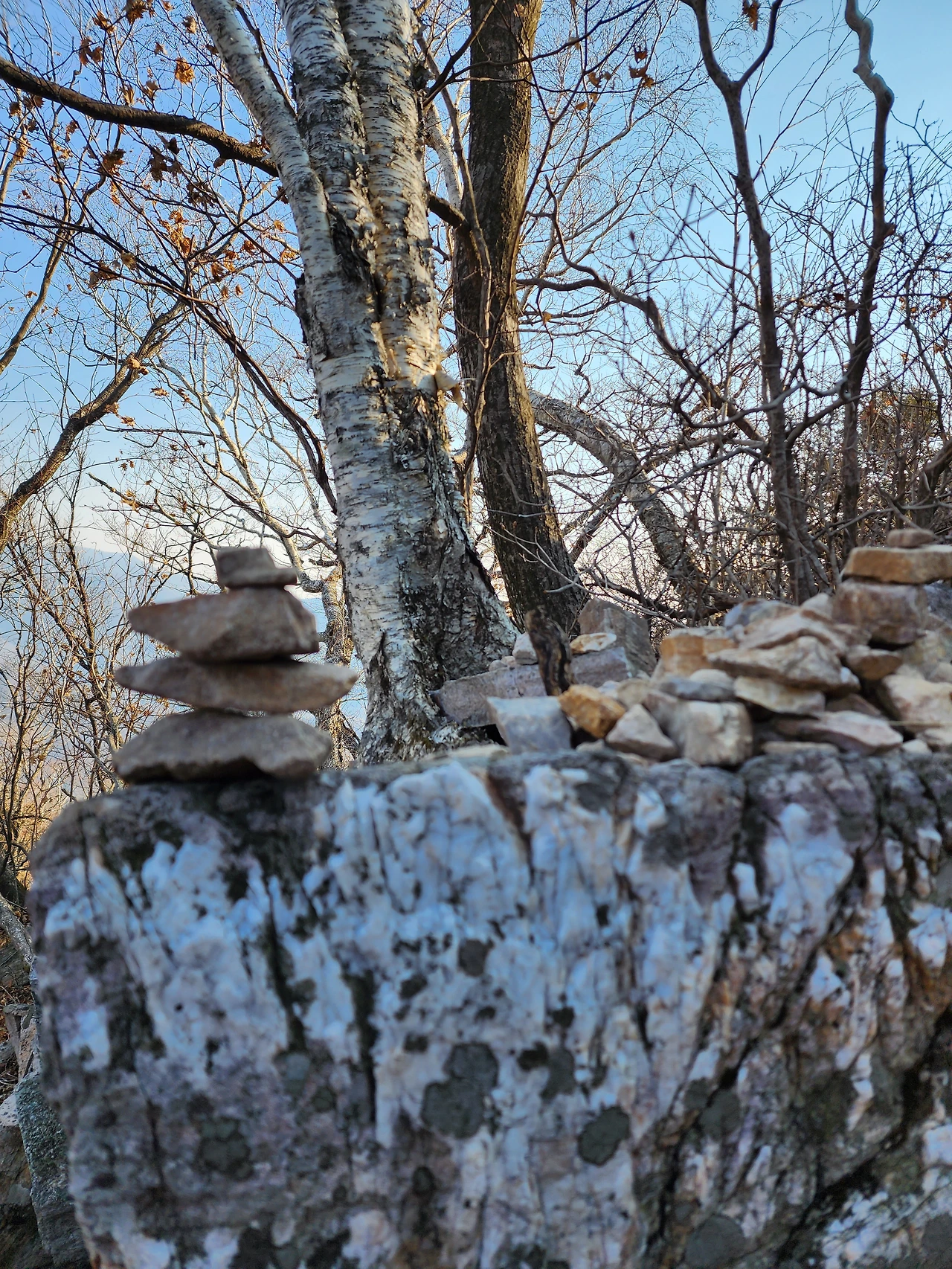 이제 조금씩 나오기 시작하는 안내문들과 계단들입니다. 오르는 내내 돌탑들을 만나서 소원도 빌어보고 멋들어진 고사목들 사이에서 사진도 찍어봅니다.