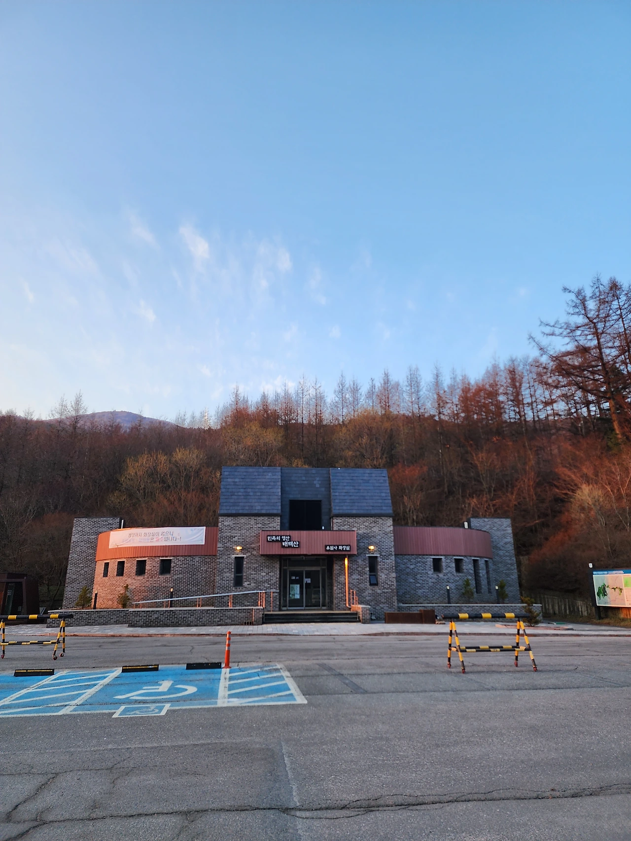 태백산을 오를 수 있는 가장 빠르고 난이도도 높지 않은 곳 유일사 코스! 주차장도 넓고 시설도 깨끗해서 너무 마음에 들었습니다. 아침에 산책 겸 한 바퀴 돌아주고 장비를 점검한 후에 등산을 할 준비를 합니다.
