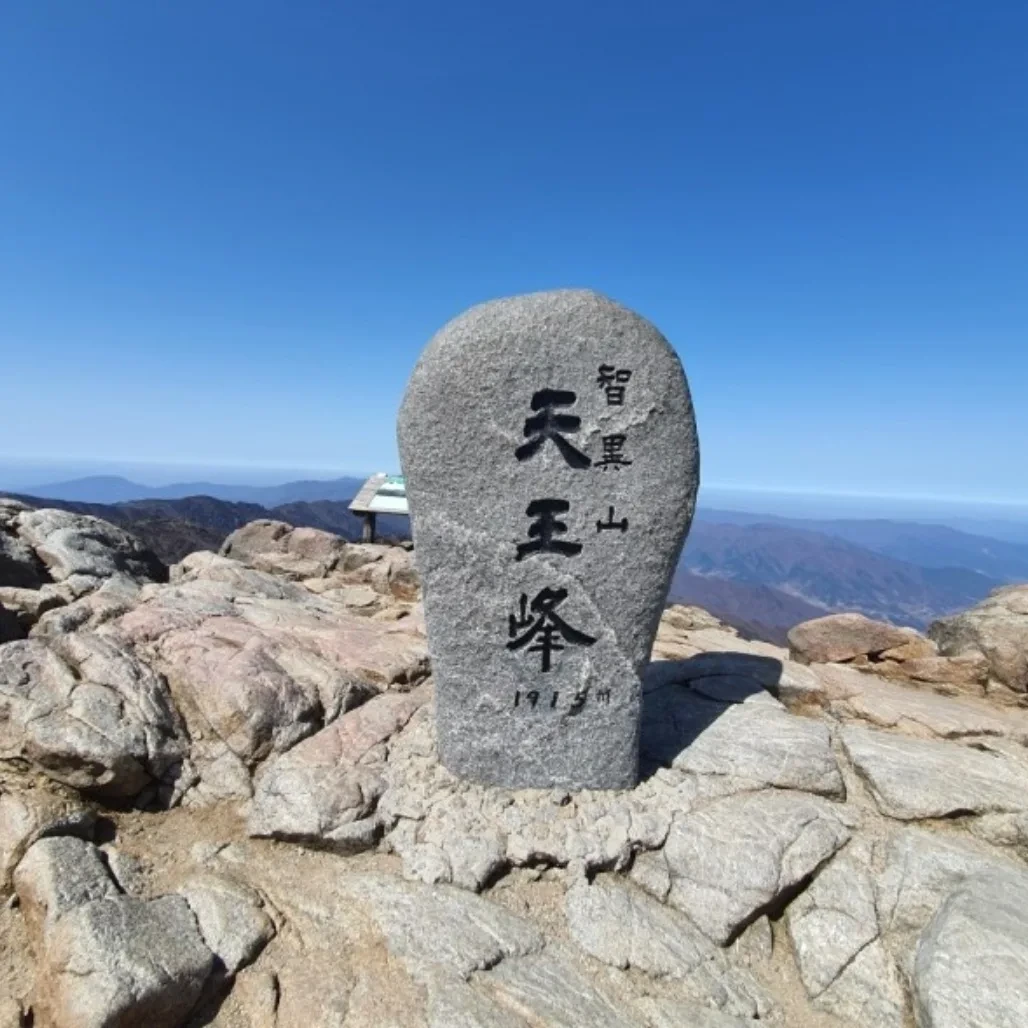 천왕봉의 정상석은 아담한 느낌으로 자리하고 있다.