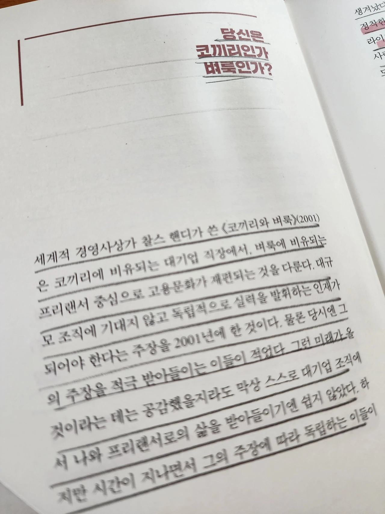 이 책을 읽으면서 이성적으로 분명 해지는 것도 있지만 마음 한 구석은 살짝 무거운 마음이 들기도 하는 시점이 있다. 그래서 나는 잘하고 있는가? 옳은 방향으로 가고 있는가에 대한 질문에 깊은 내면에서부터 올라온다.